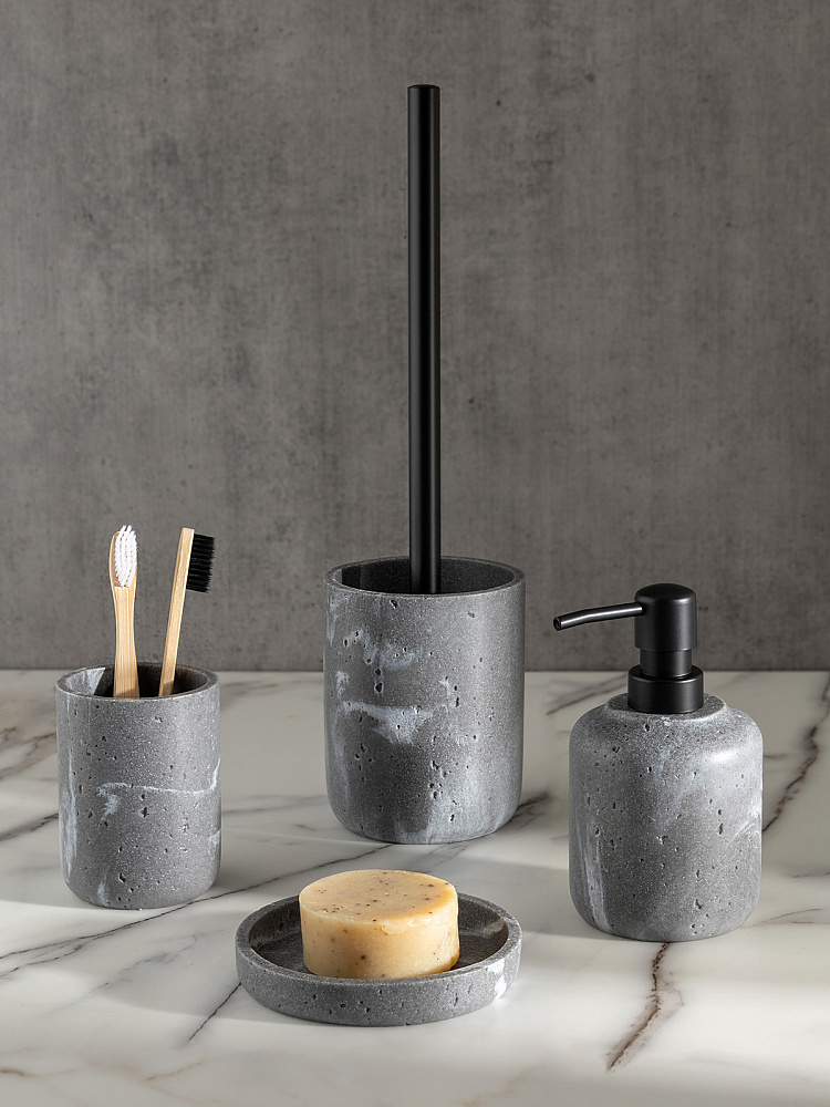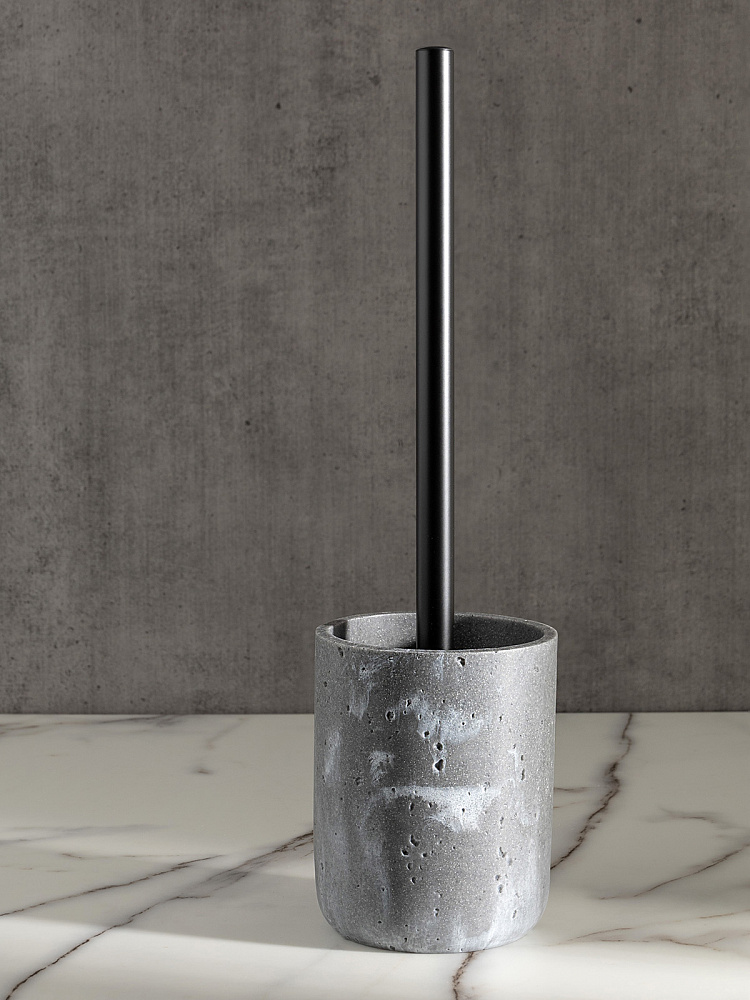 Щетка для унитаза 10см DE'NASTIA Ronda белая волна с подставкой серый полирезина