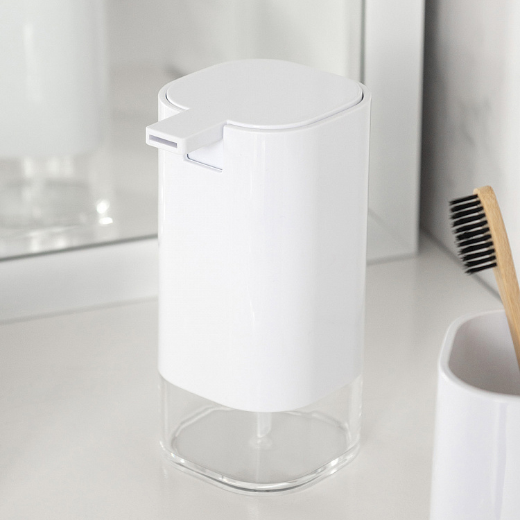 Диспенсер для жидкого мыла 9,9х7,7х16см DE'NASTIA STABLE W белый пластик/акрил