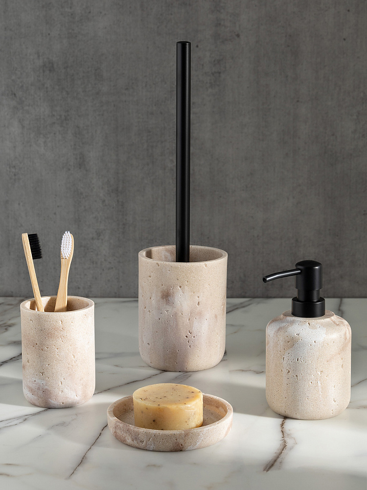 Диспенсер для жидкого мыла 300мл 8,5см DE'NASTIA Ronda белая волна песочный полирезина