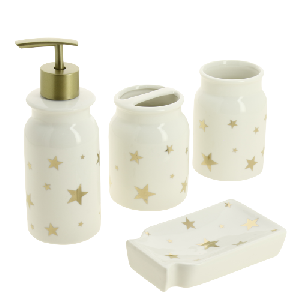Набор для ванной 4 предмета ДОЛЯНА Звезды мыльница дозатор для мыла 2 стакана керамика пластик
