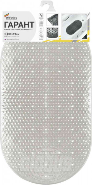 Коврик для ванны 38х69см ВИЛИНА Гарант на присосках жемчужный литой ПВХ