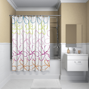 Штора для ванной комнаты IDDIS.100% Полиэстер, плотность - 80 г/м2, р-р 200-180 cм (в*ш), 12 колец в комплекте формы"C", люверсы бел