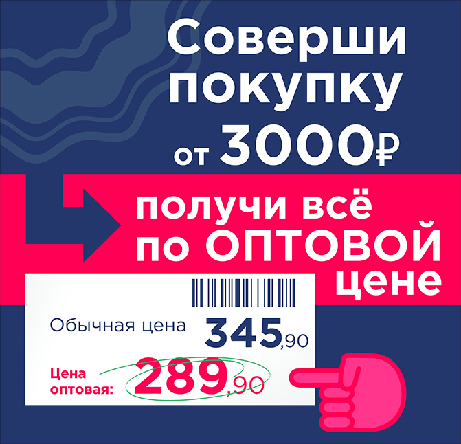 - Скидка по акции действует только на товары, у которых обозначена «цена опт». На товары, участвующие в других акциях, на которые уже снижена цена, дополнительная скидка не предоставляется (не действует на желтые ценники).
